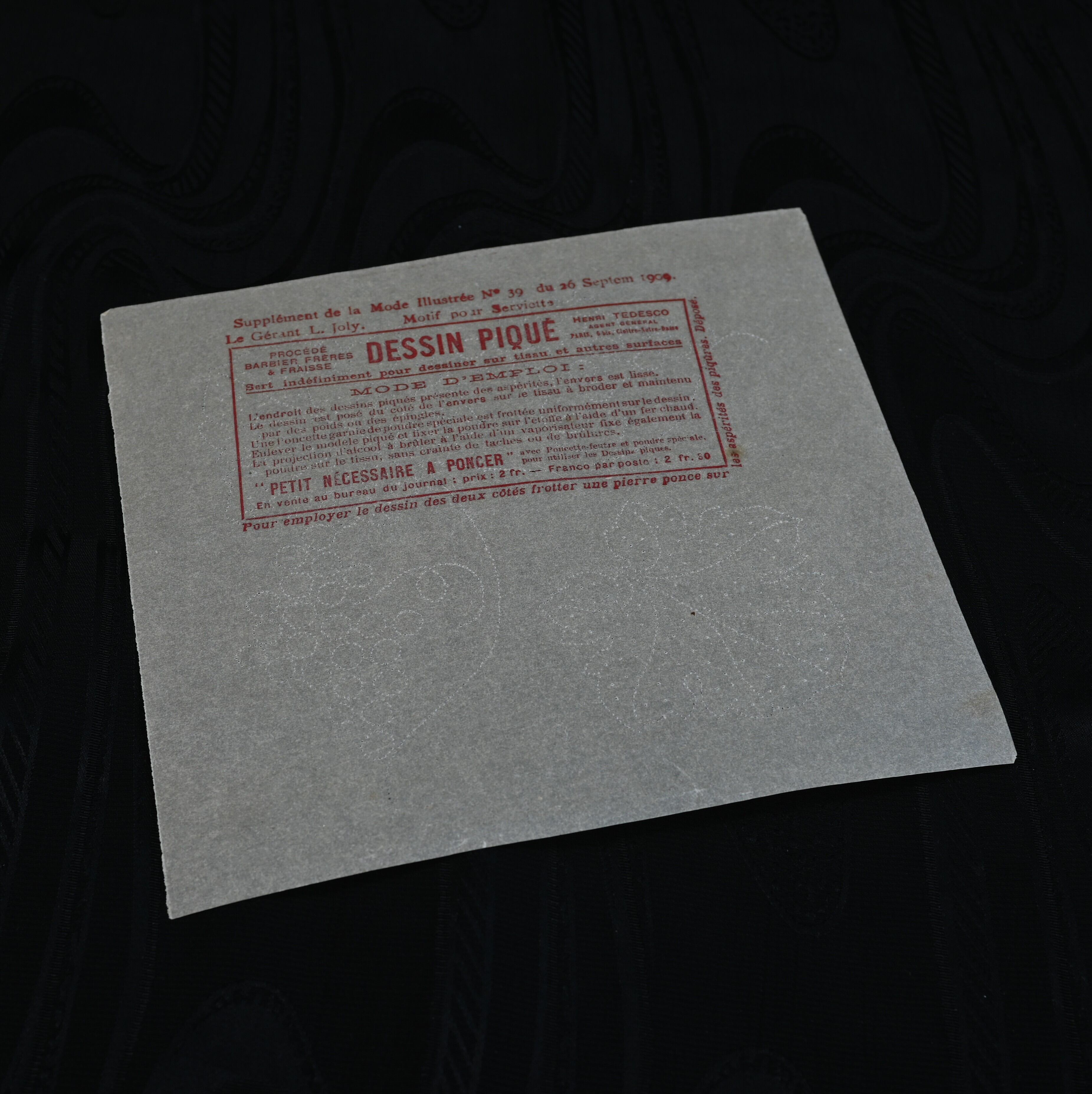 薄い紙に図案が小さな穴を開け描かれているデッサンピケです。