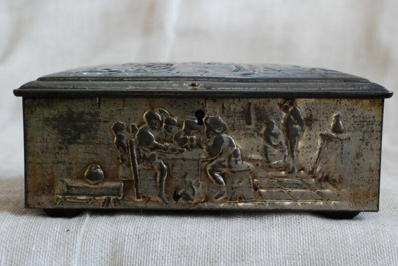 ダイニングで男性4人がテーブルを囲んでいる様な模様がエンボスされています。