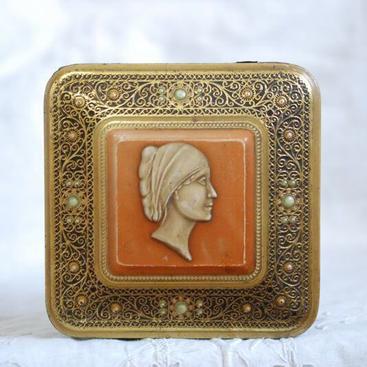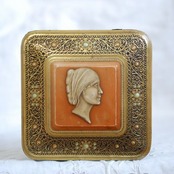 女性の顔と宝石のようなものは全てエンボスになっています。