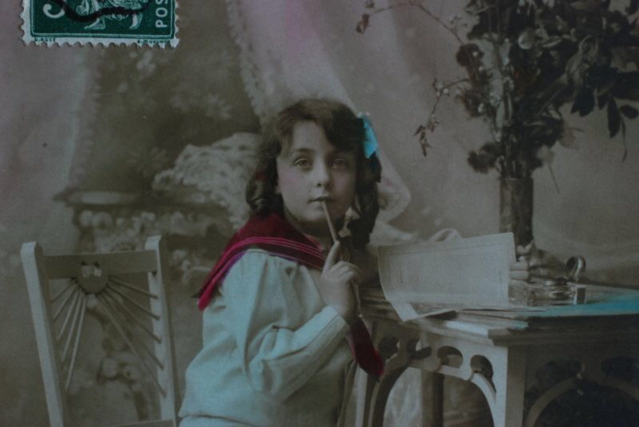 半ズボン姿ですが、リボンをしているので女の子でしょう。