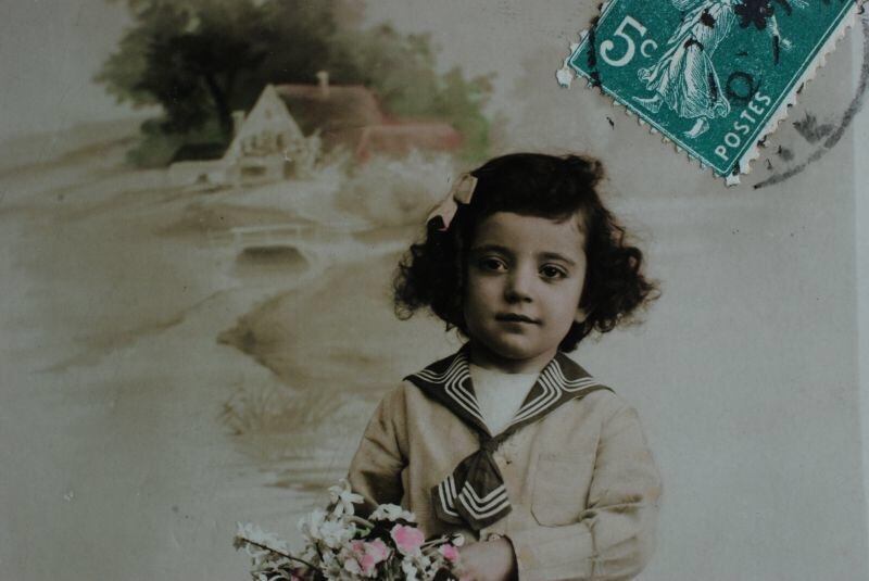 1910年 Bonne Anne's 花かごを持つ子供 アンティークポストカード