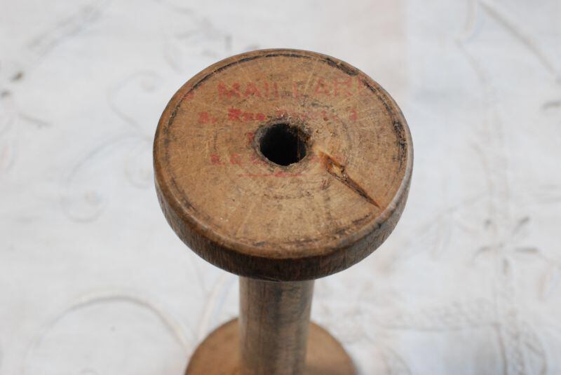 アンティーク スタンプ付き木製スプール 糸巻. [D]