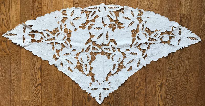 古いリネンに、丁寧に作られたカットワーク刺繍のショールです。