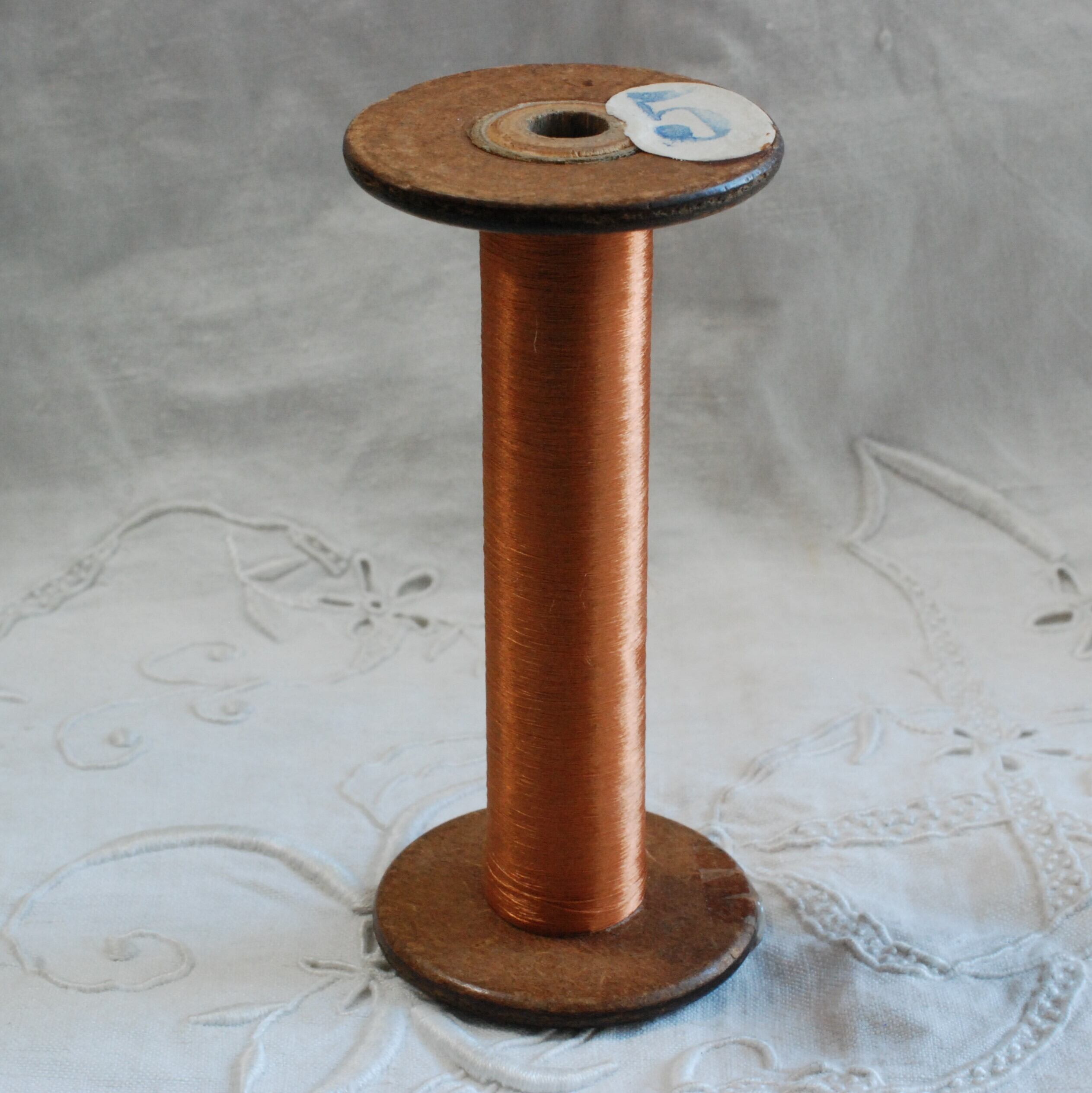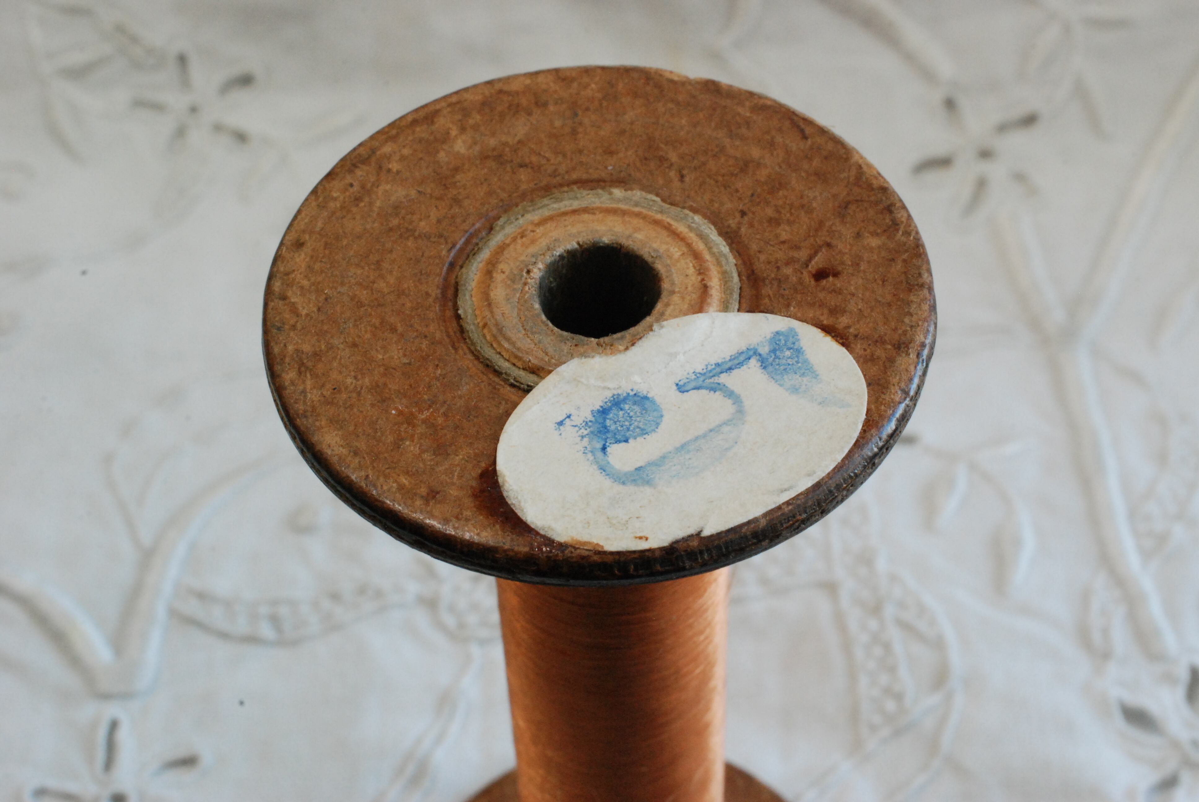 紙を圧縮した素材で作られたスプールにシルクの糸が残っています。