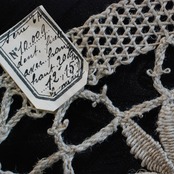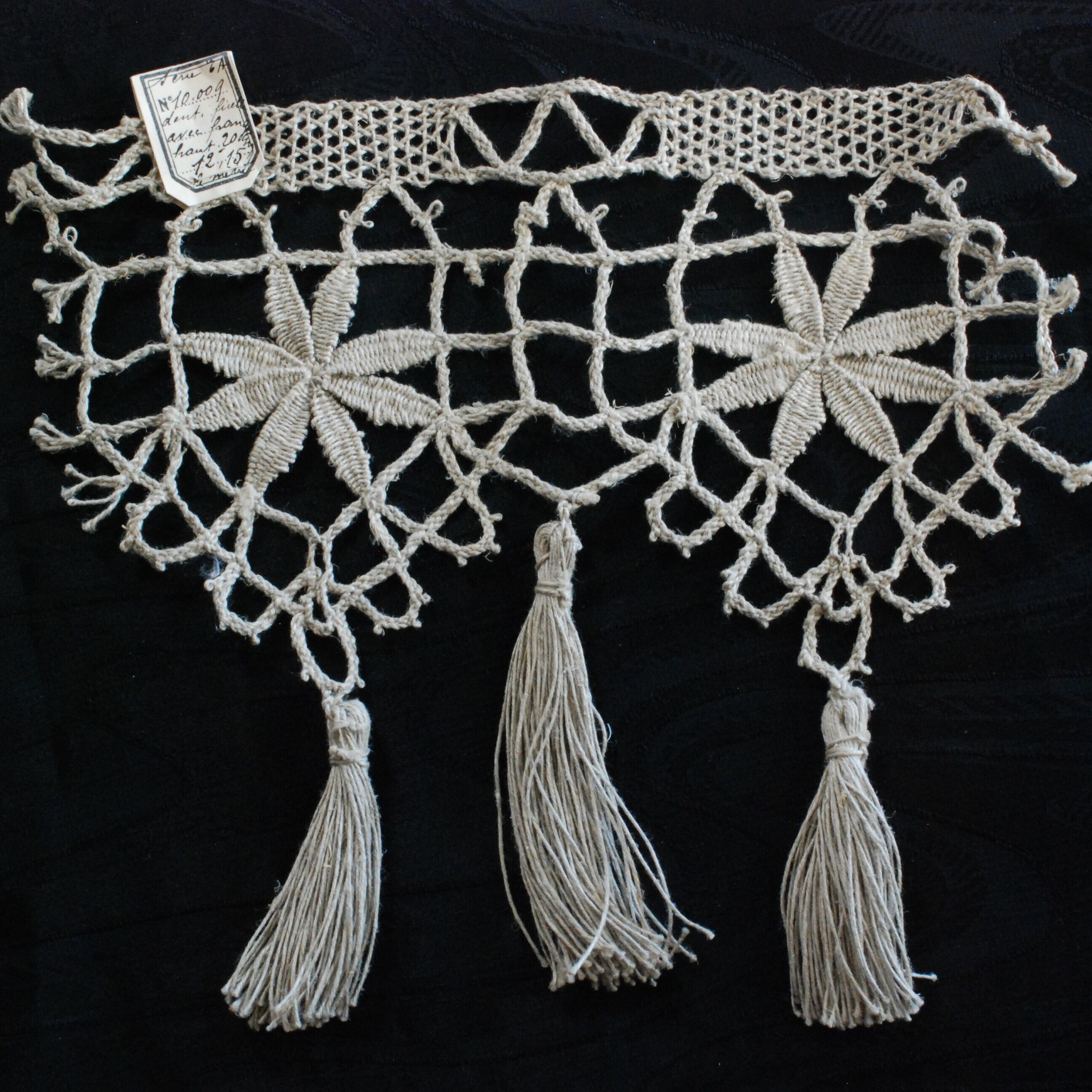アンティークボビンレース ラベル付きレース21cmx24cm No10009。