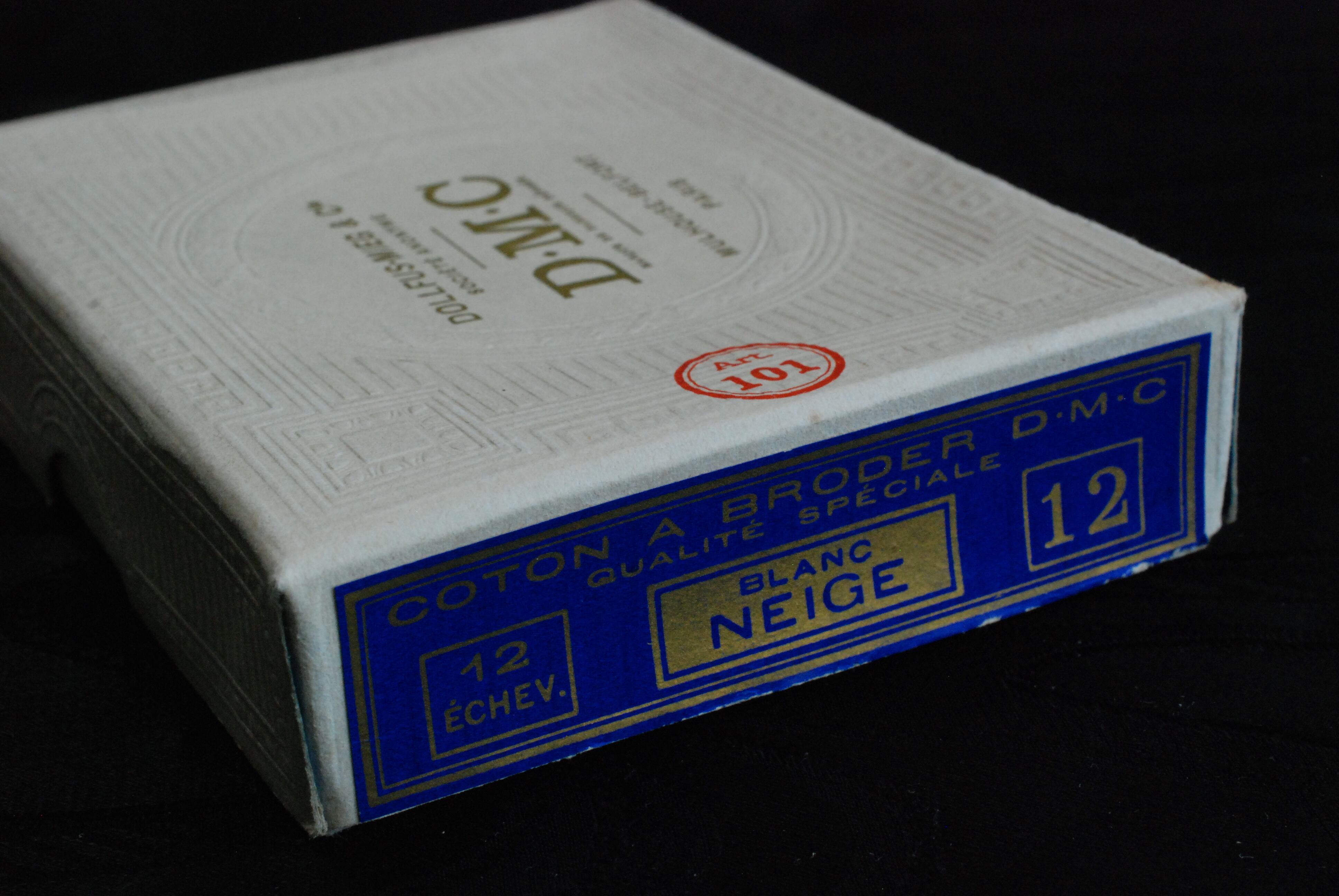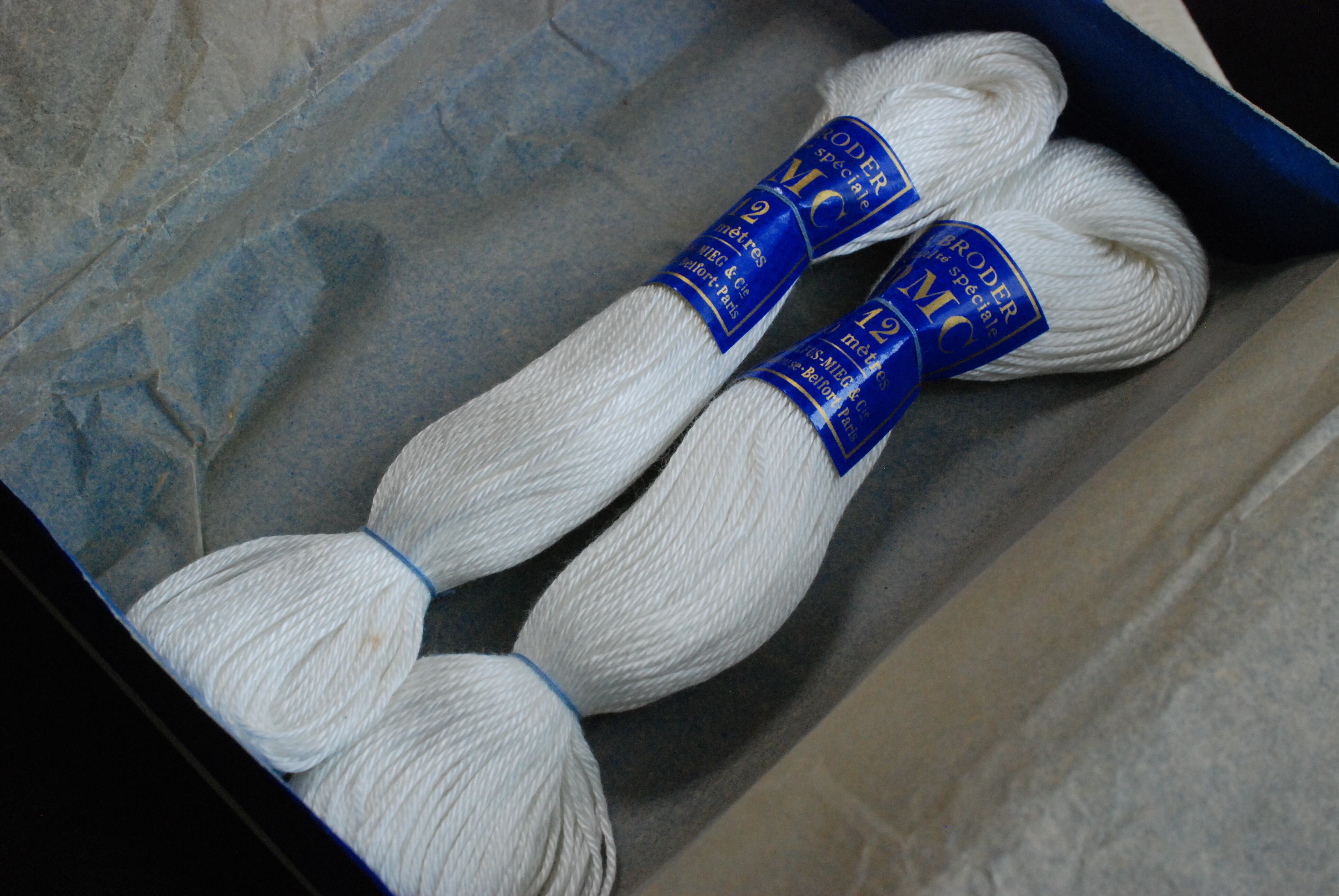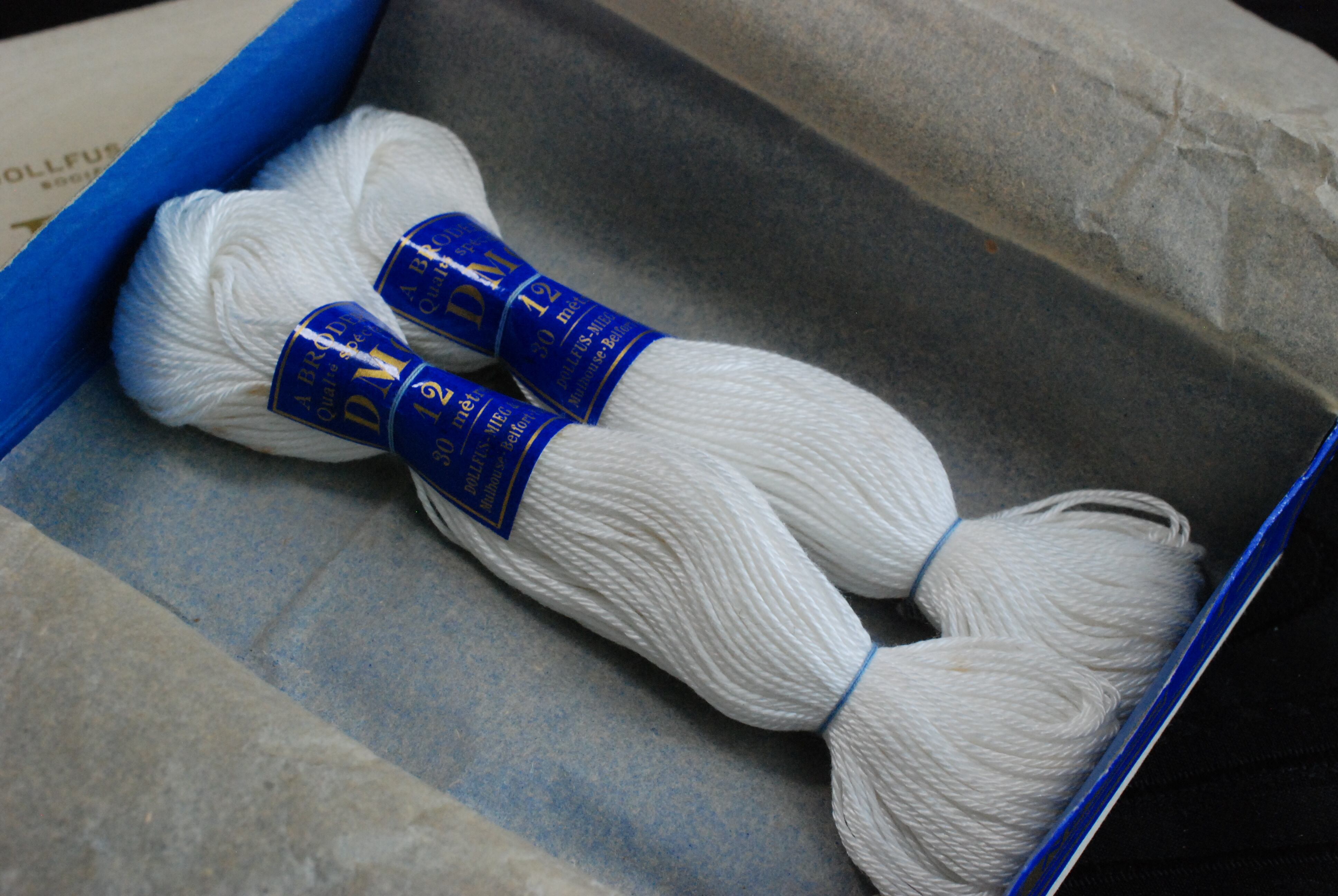 DMCのCOTON A BRODER No12と書かれた糸箱に