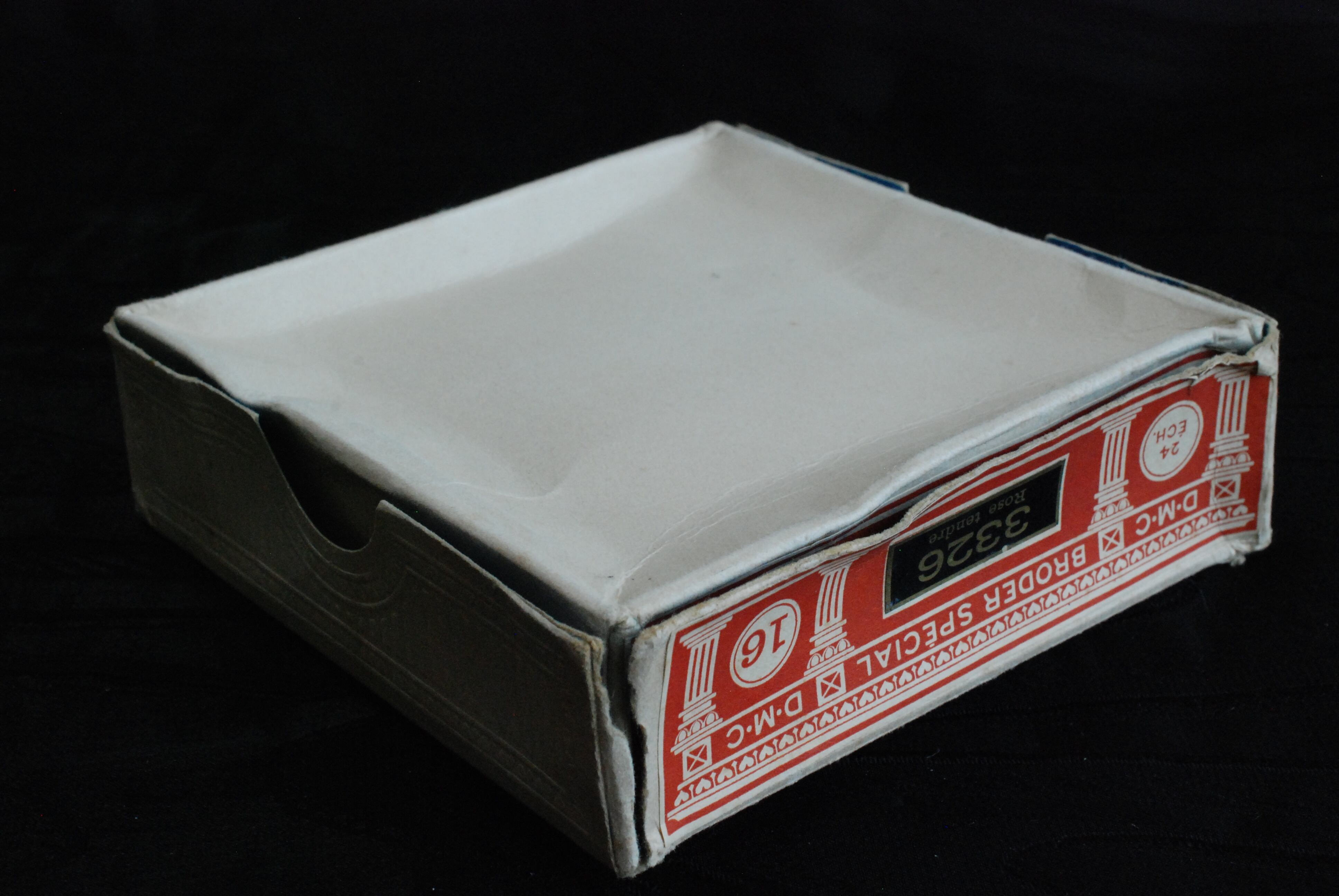 DMCのCOTON A BRODER No12と書かれた糸箱に