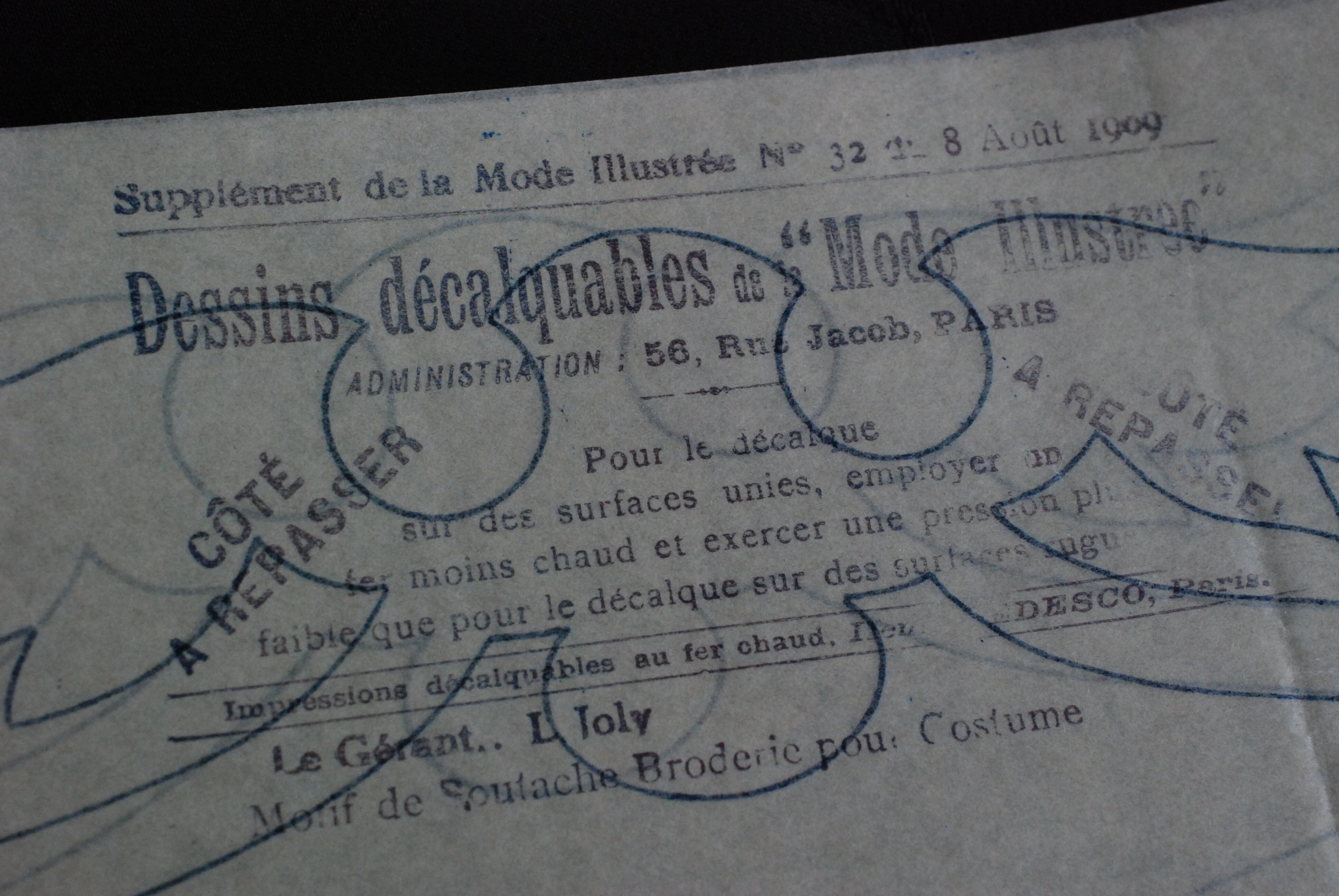 1909年8月 転写シート コスチュームのブレード刺繍図案