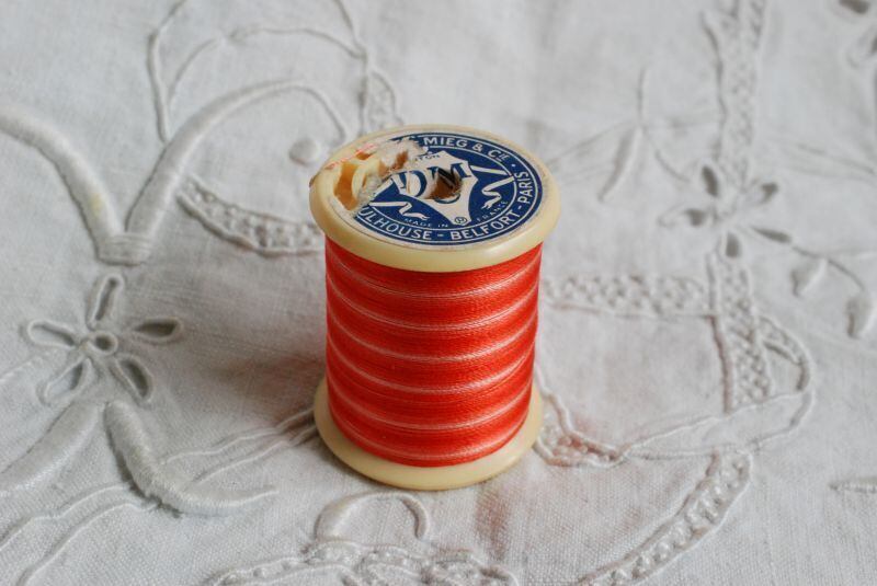 ミシン糸で、樹脂製の糸巻きに巻かれています。