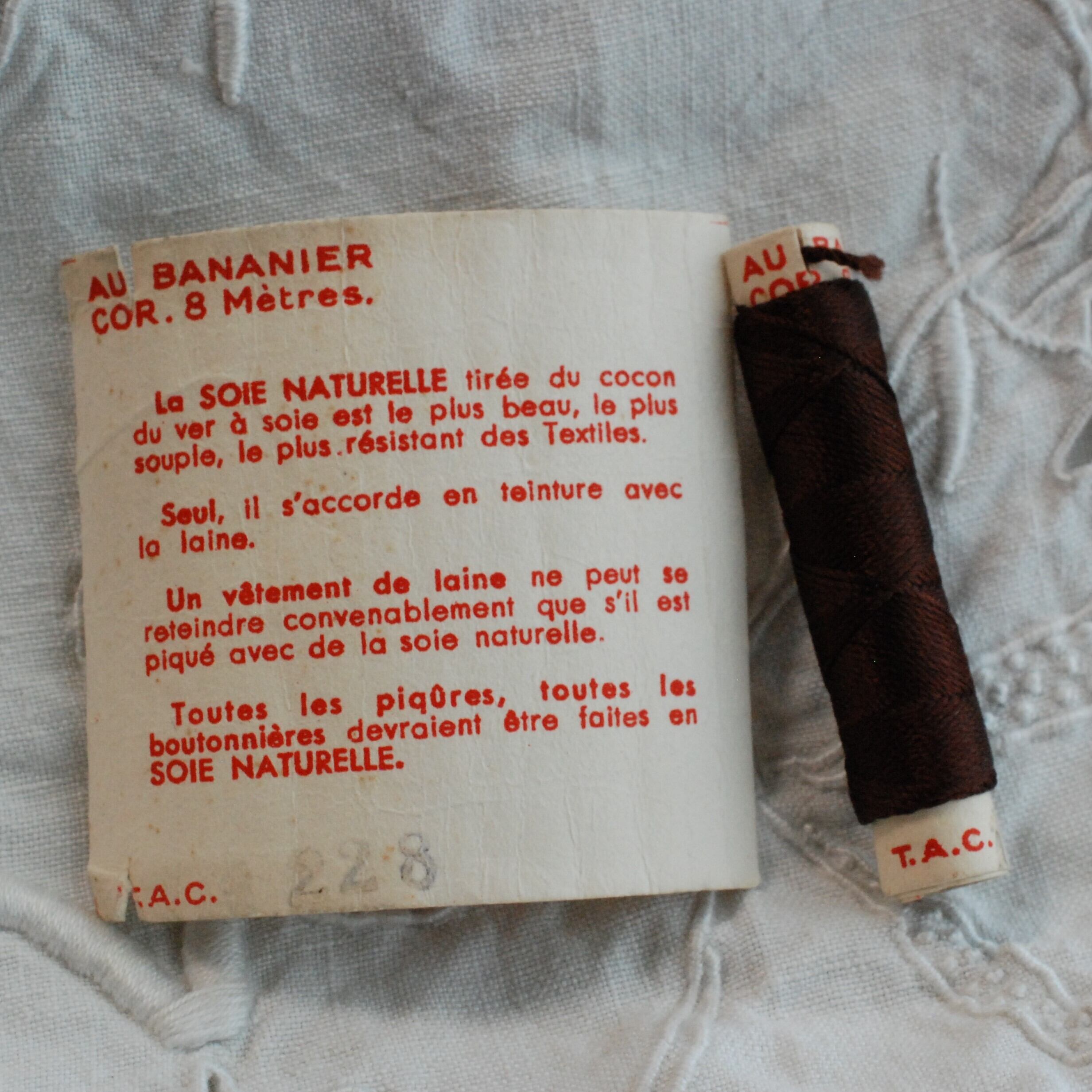 T.A.C社のAu BANANIERという紙包みに巻かれた絹糸です。