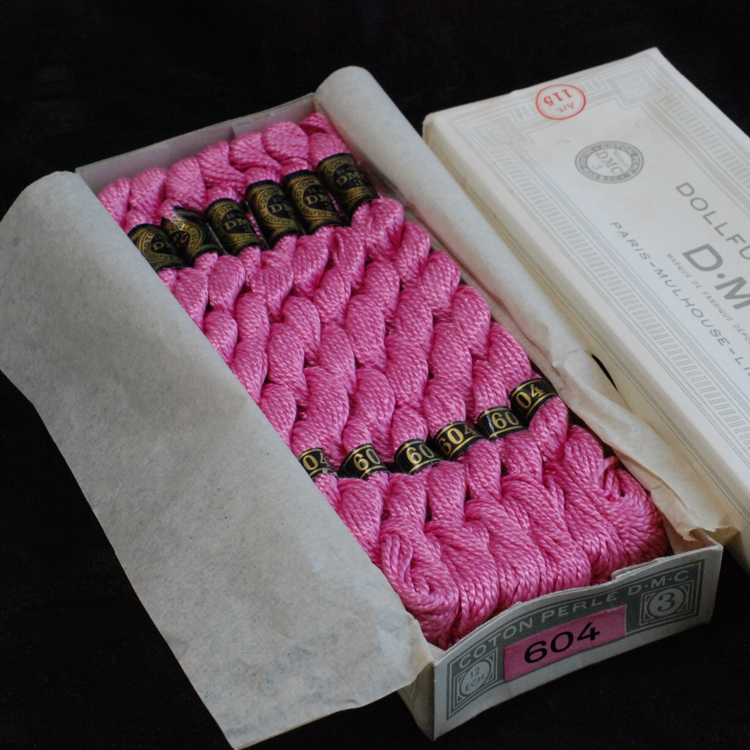 アンティーク DMCコットンパール#3 ピンク系#604 12本箱入り