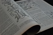 カットワーク、白糸刺繍などの図案や作品例が紹介されています。