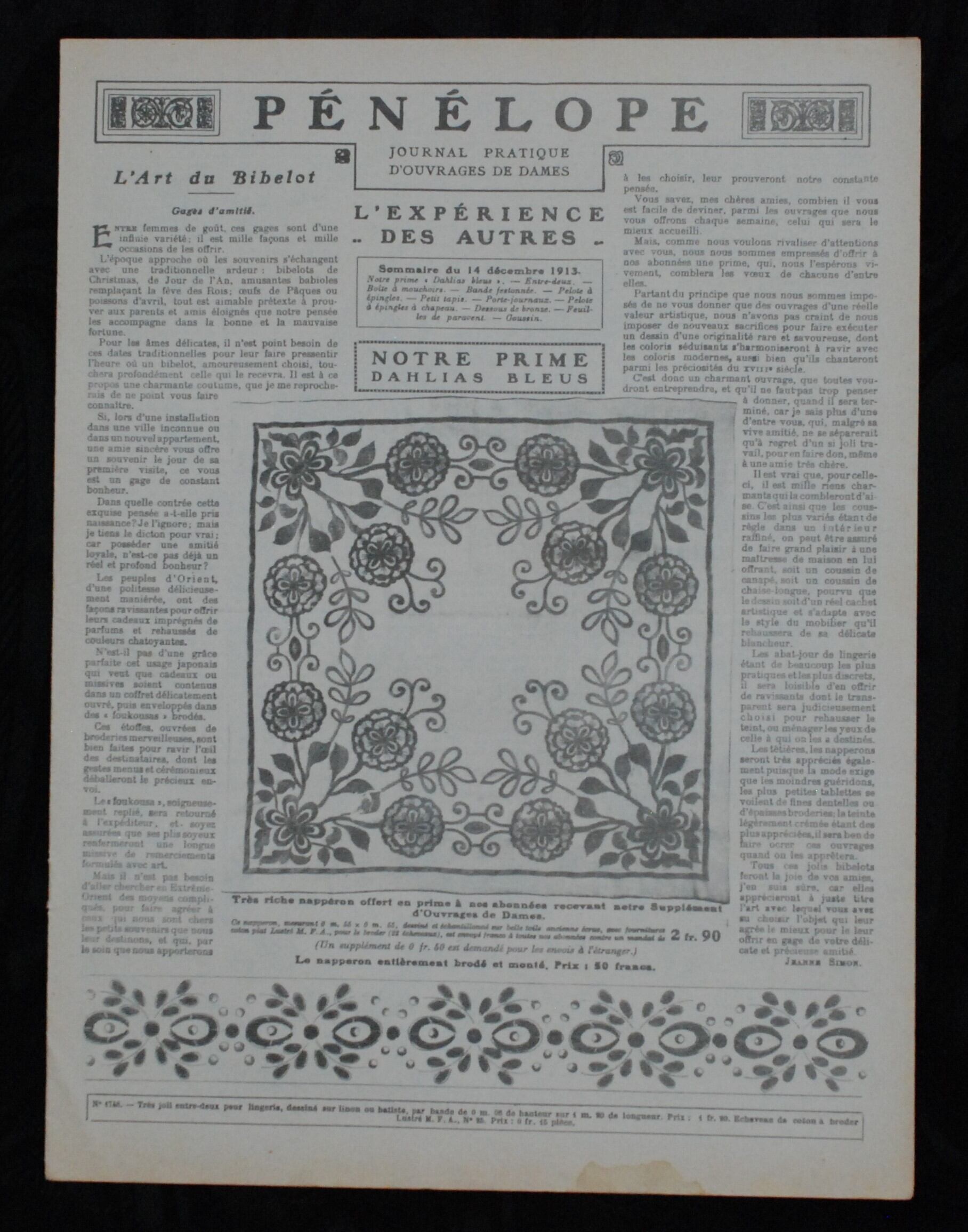 1913年12月14日のPÉNÉLOPE手芸特集の冊子です。